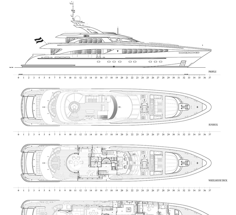 Turning concepts into tangible functional layouts and circulation & space planning for owners, guests, and crew.